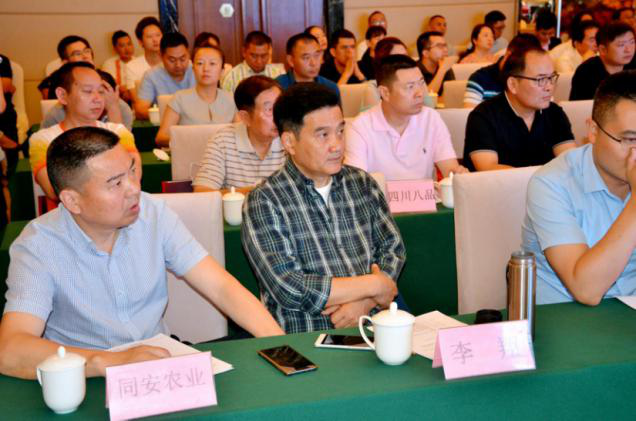 綿陽市市場監(jiān)督管理局張靜博副局長、農(nóng)業(yè)農(nóng)村局劉強科長、市委統(tǒng)郭訓(xùn)強副科長;綿陽綠色有機行業(yè)協(xié)會名譽會長蔣開恩、綿陽綠色有機行業(yè)協(xié)會執(zhí)行會長廖藝徽;涪城區(qū)委統(tǒng)戰(zhàn)部副部長、工商聯(lián)(總商會)黨組陳家書記;龍門鎮(zhèn)謝欣鎮(zhèn)長,余婕副鎮(zhèn)長;四川西部冷都商業(yè)管理有限公司楊新林總經(jīng)理、四川馴鹿物流科技有限公司蕭劍董事長、市場匯翔供應(yīng)鏈管理有限公司顏福才董事長、綿陽同安農(nóng)業(yè)科技有限公司董小明總經(jīng)理出席本次研討會;省、市食品生產(chǎn)、經(jīng)營加工企業(yè)80余家;物流企業(yè)11家及媒體6家共計120余人參會。