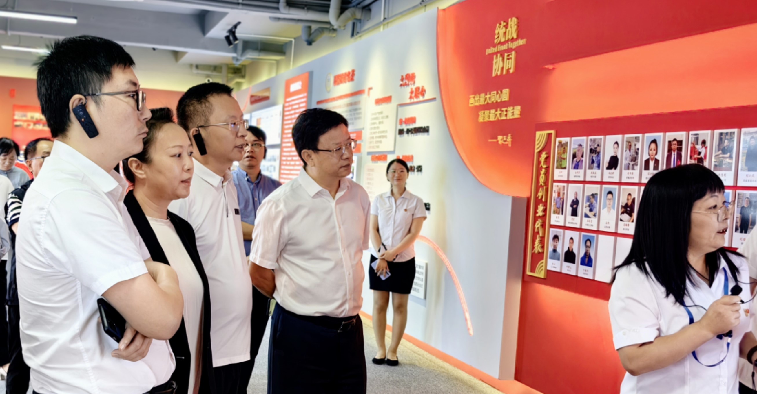王書記一行參觀了同心協(xié)同創(chuàng)新園展示廳,聽取了科源集團總經(jīng)理廖麗娟等就“黨建引領(lǐng)、統(tǒng)戰(zhàn)協(xié)同,全面助力產(chǎn)業(yè)發(fā)展”工作開展情況匯報。