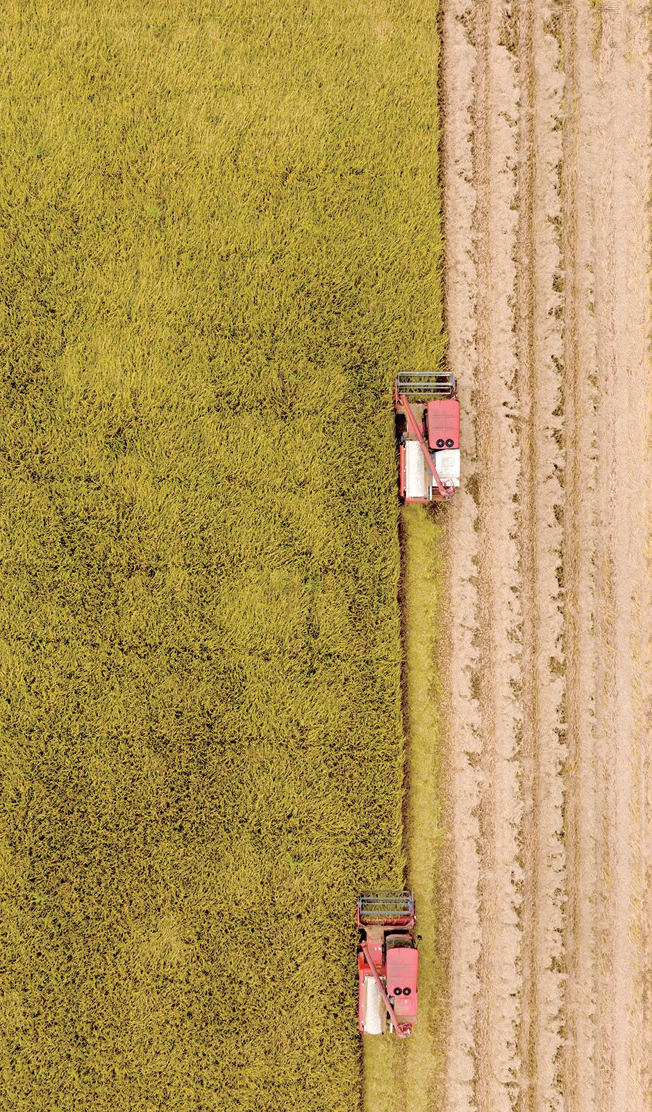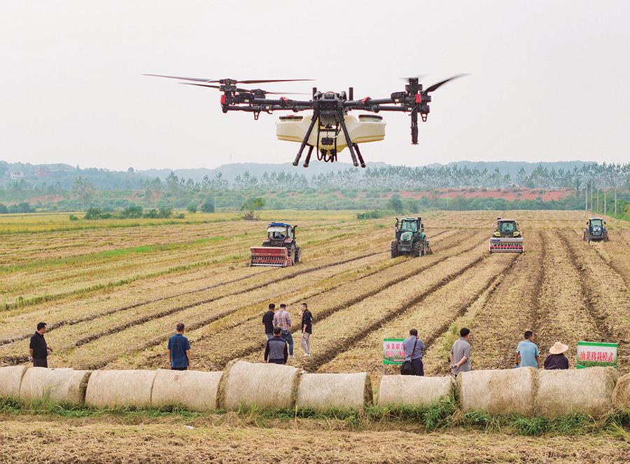 14日,在陽新縣荊頭山農(nóng)場,多臺農(nóng)機(jī)在金黃色的稻田里來回奔忙,植保無人機(jī)在空中播撒油菜籽。時(shí)值金秋,陽新41.8萬畝水稻全面進(jìn)入成熟期,全縣1000余臺智能農(nóng)機(jī)穿梭田間,按下秋收“快進(jìn)鍵”,為全年糧食豐收筑牢堅(jiān)實(shí)基礎(chǔ)。陽新計(jì)劃今年油菜播種面積35萬畝,小麥播種面積6.6萬畝。