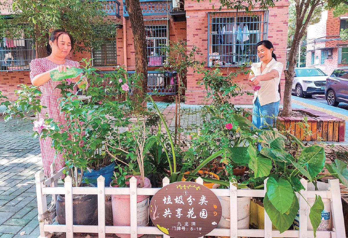 昨日,開發(fā)區(qū)·鐵山區(qū)九龍洞社區(qū)居民和垃圾分類工作人員正在給共享花園的花卉澆水。據(jù)了解,開發(fā)區(qū)·鐵山區(qū)城維園林綠化公司共在鐵山街道各社區(qū)建設了垃圾分類共享花園50余個,旨在鼓勵居民共同參與垃圾分類,推動綠色生活方式的普及。