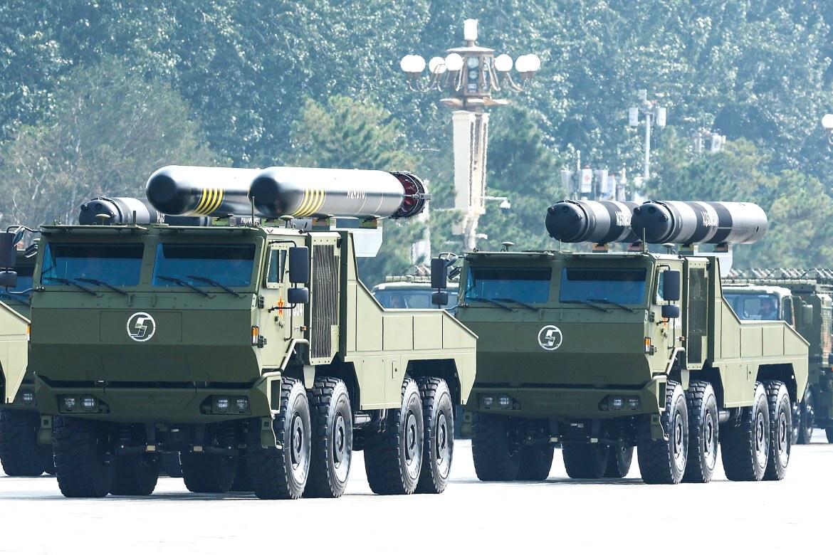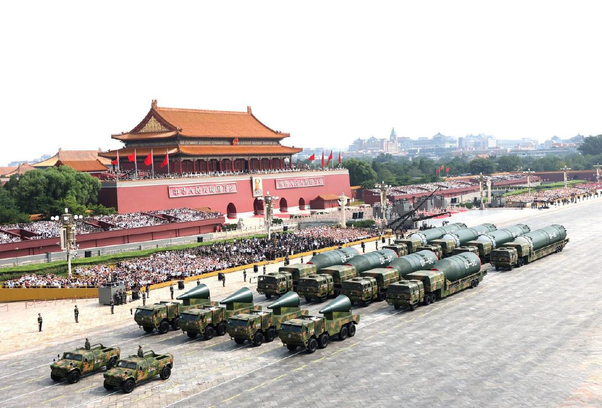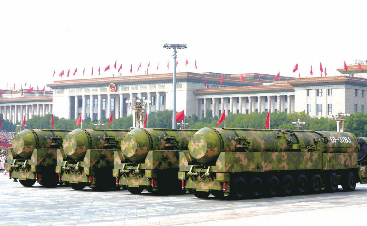 核導(dǎo)彈第一方隊:受閱的“驚雷-1”空基遠(yuǎn)程導(dǎo)彈、“巨浪-3”潛射洲際導(dǎo)彈、“東風(fēng)-61”陸基洲際導(dǎo)彈、“東風(fēng)-31”新型陸基洲際導(dǎo)彈,首次集中展示我軍陸、海、空基“三位一體”戰(zhàn)略核力量。